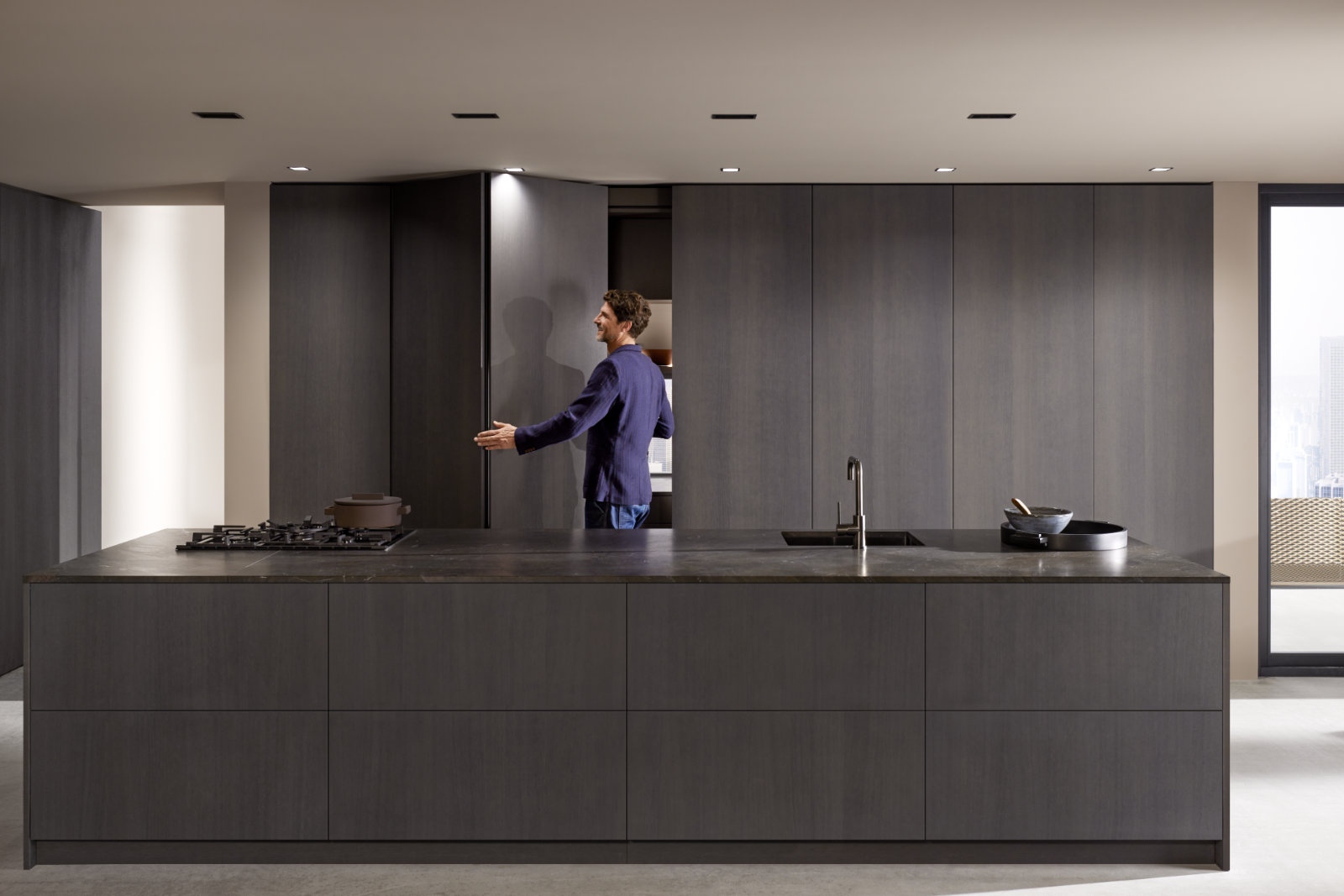 Ez a gyakorlatban azt jelenti, hogy egy kisebb lakásban pillanatok alatt nappaliból konyhát varázsolhatsz, egy nagyobb térben pedig elegáns térelválasztást hozhatsz létre. A home office munka után eltűnik, a gépparkot pedig nem kell folyamatosan nézned. A teljes ráütődésű előlapok egy keskeny korpuszba csúsznak, így nyitott állapotban semmi nincs útban. Az új, pultra ültethető verzióval már nemcsak magas szekrényeknél működik a koncepció. A kiállításon több partnernél is találkozhatsz ezzel a megoldással, például az Interfa, a Pannónia Bútorstúdió, a Cliff és a Sezlon Galéria standján.