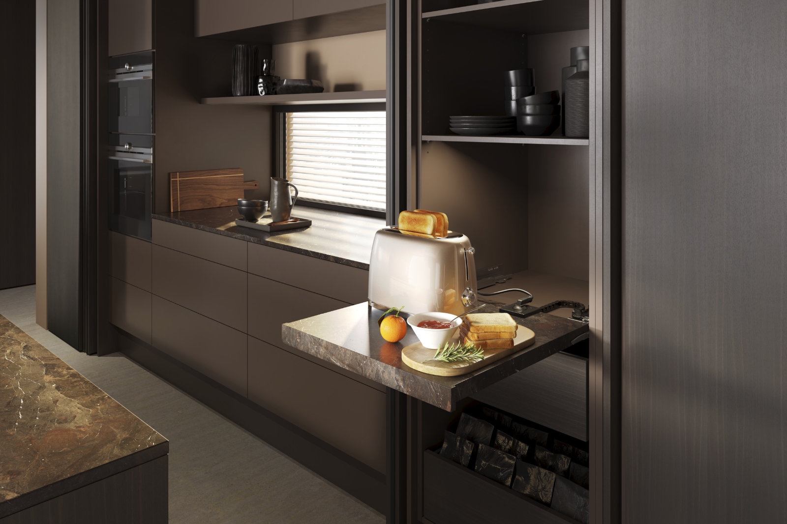 Fiók, ami magától nyílik. Ajtó, ami eltűnik a bútorban. Konnektor, amit nem látsz, mégis ott van, ahol kell. Fellépő, ami tárol is.