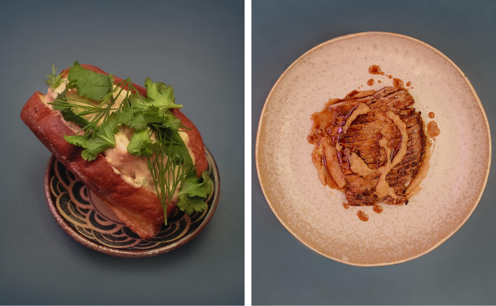 Botond: Az Iberico Tonteki Karashi Misóval szépen hozza a fúziót. Az iberico sertéskaraj steaket házilag érleljük, ez készítjük el karashi miso szósszal. Nagyon erős.
