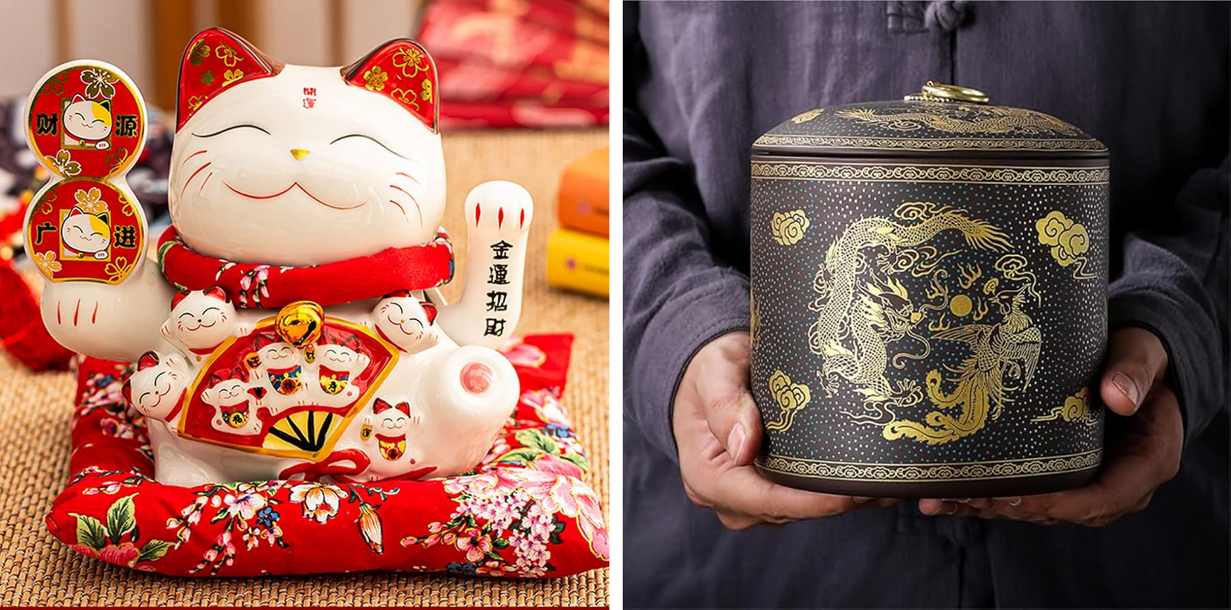 A kínai asztalkultúrában az ételek középre kerülnek, a közös fogyasztás hangsúlyos. A porcelán- és lakktárgyak, a teáskészletek és a dekoratív elemek – például az integető macska – nem csupán díszek, hanem kulturális referenciák. A teríték mellett megjelenő szerencsesüti és egyéb gasztronómiai kiegészítők tovább erősítik az autentikus élményt.