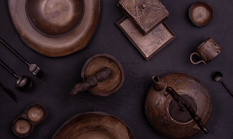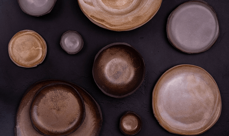The collections are defined by a Japanese wabi-sabi approach, minimalism, and functionality. The focus of the work is the natural character of black, chamotte clay, and the making process is deliberately retained on the surfaces. Subtle asymmetries, hand-shaped details, stone-like chipped edges, and natural colours give the pieces their unique appearance—these are not decorative elements, but the imprints of the artisan process.