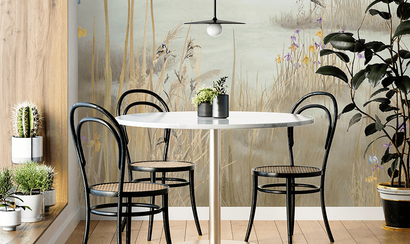 Molnár Éva mintavilágához a természetben és az élővilágban fellelhető formák, anyagok és színek adnak kifogyhatatlan inspirációt és motivációt arra, hogy ezt a kinti világot a belső terek szerves részévé tegye. A minták és a pasztell árnyalatok egyedi képi világot alkotnak és jól beilleszthetők minden enteriőrbe. A tudatosan megválasztott tapéták pozitív hatással vannak hangulatunkra, a természet ihlette minták pedig harmóniát teremtenek.