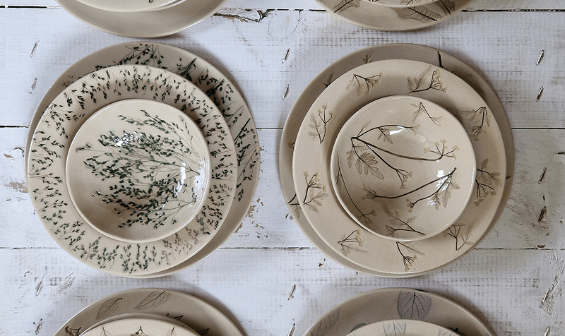 A Rezeda Ceramics műhely kerámiáinak különlegessége és egyedisége a valódi növények mintáiban rejlik. A valódi növények használata miatt lenyomatuk, formájuk és textúrájuk valóban visszaköszönnek az agyag felszínén. A természet kimeríthetetlen sokszínűsége és hangulata jelenik meg minden egyes darabon.