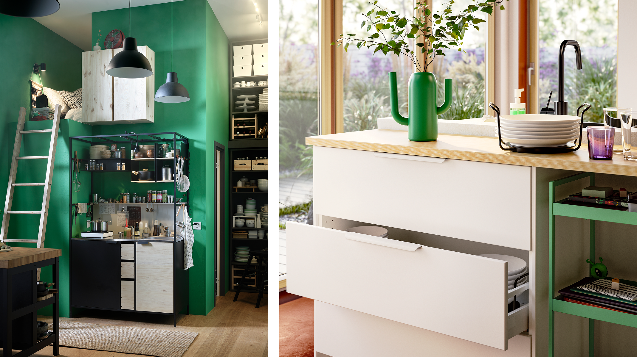 A nagy átalakítás mellett azok is találnak inspirációt, akik kisebb beruházással frissítenék otthonunkat. Az IKEA METOD rendszere rugalmasan alakítható, az előlapok, fogantyúk vagy munkalapok cseréje pedig már önmagában új karaktert adhat a térnek. A színek, anyagok és formák sokféle kombinációjának köszönhetően bárki könnyedén személyre szabhatja konyháját.