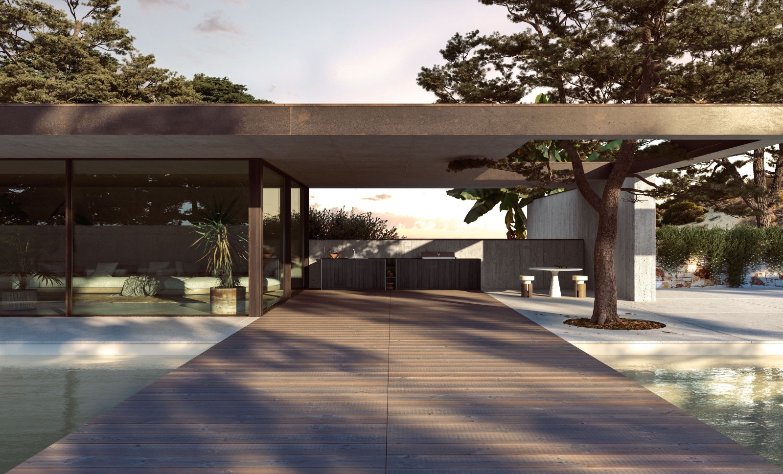 Az arányok, tengelyek és felületi váltások fegyelmezett szerkesztése teremti meg az egyensúlyt. A világítás tervezése is ezt a gondolkodást követi: nem látványos effektusokra épít, hanem a használati igényekhez igazodik.