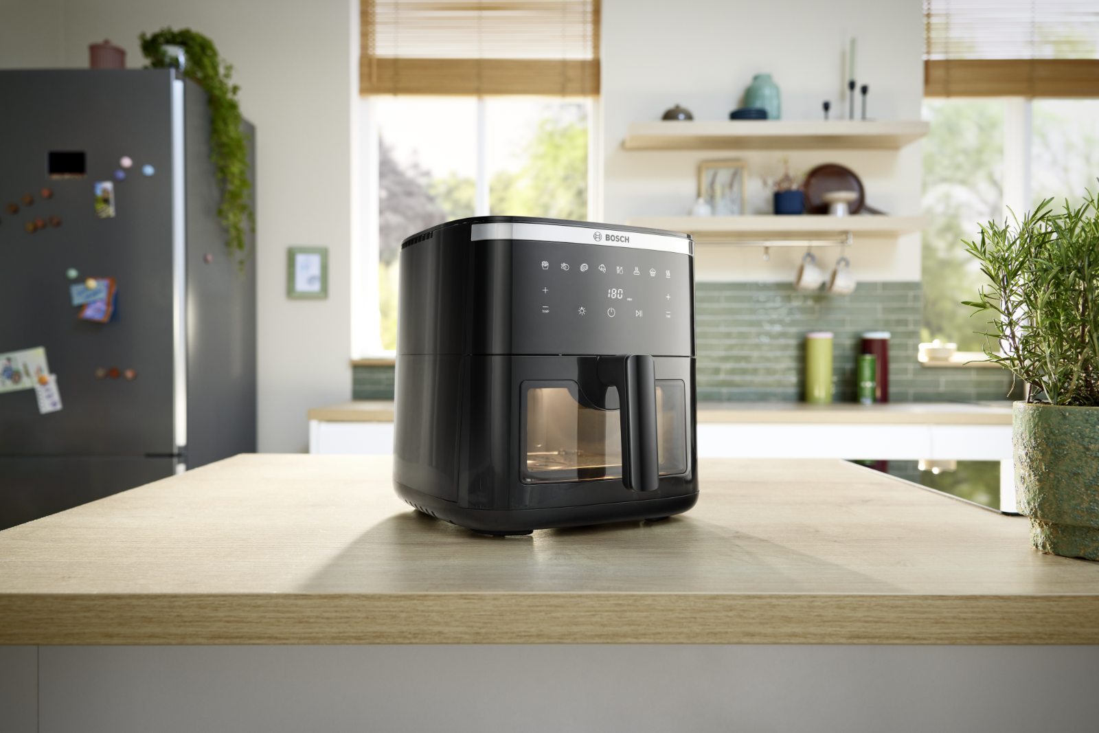A ropogós textúra sokunk kedvence, de ma már tudatosabban választunk. A Bosch Serie 6 Air Fryer akár 95%-kal kevesebb olajjal készít ízletes fogásokat, miközben akár 65%-kal gyorsabban dolgozik előmelegítés nélkül, és akár 70%-kal kevesebb energiát használ egy hagyományos sütőhöz képest.