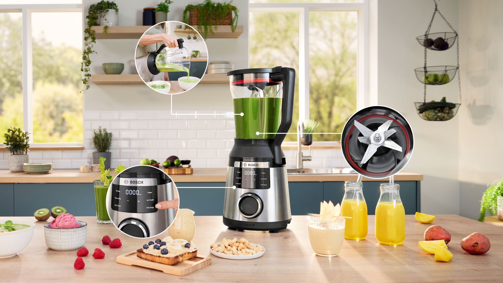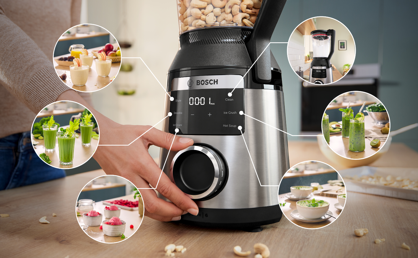 Egy reggeli smoothie vagy egy krémleves akkor jó, ha valóban selymes. A VitaPower Serie 6 1800 wattos motorja és ProSpeed 6 élű kése a keményebb alapanyagokkal – magvakkal, gabonával, jéggel – is magabiztosan dolgozik.