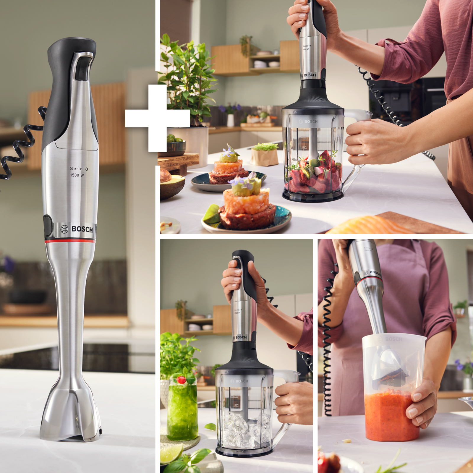 Egy jó botmixer akkor igazán értékes, ha mindig kéznél van és mindig megbízható. Az ErgoMaster Serie 8 1500 wattos, léghűtéses motorja és 6 pengéjű rozsdamentes acél kése gyors és finom eredményt biztosít.